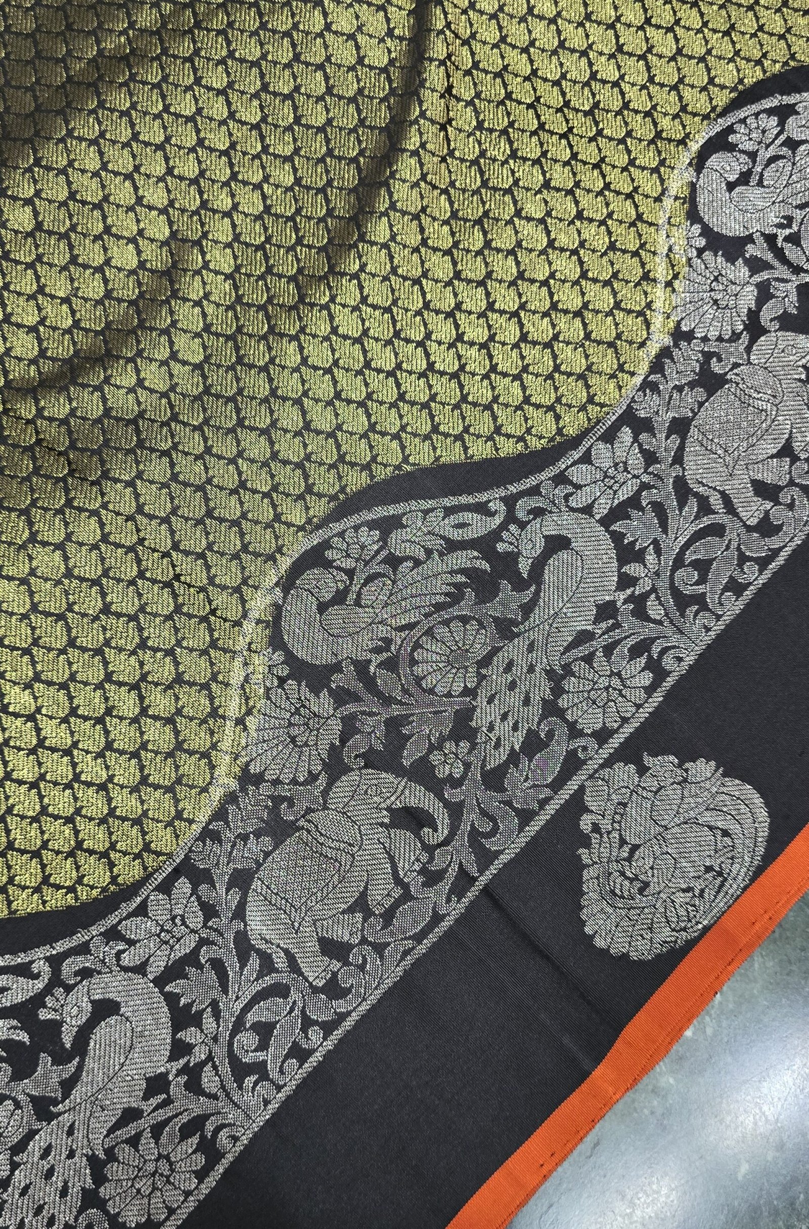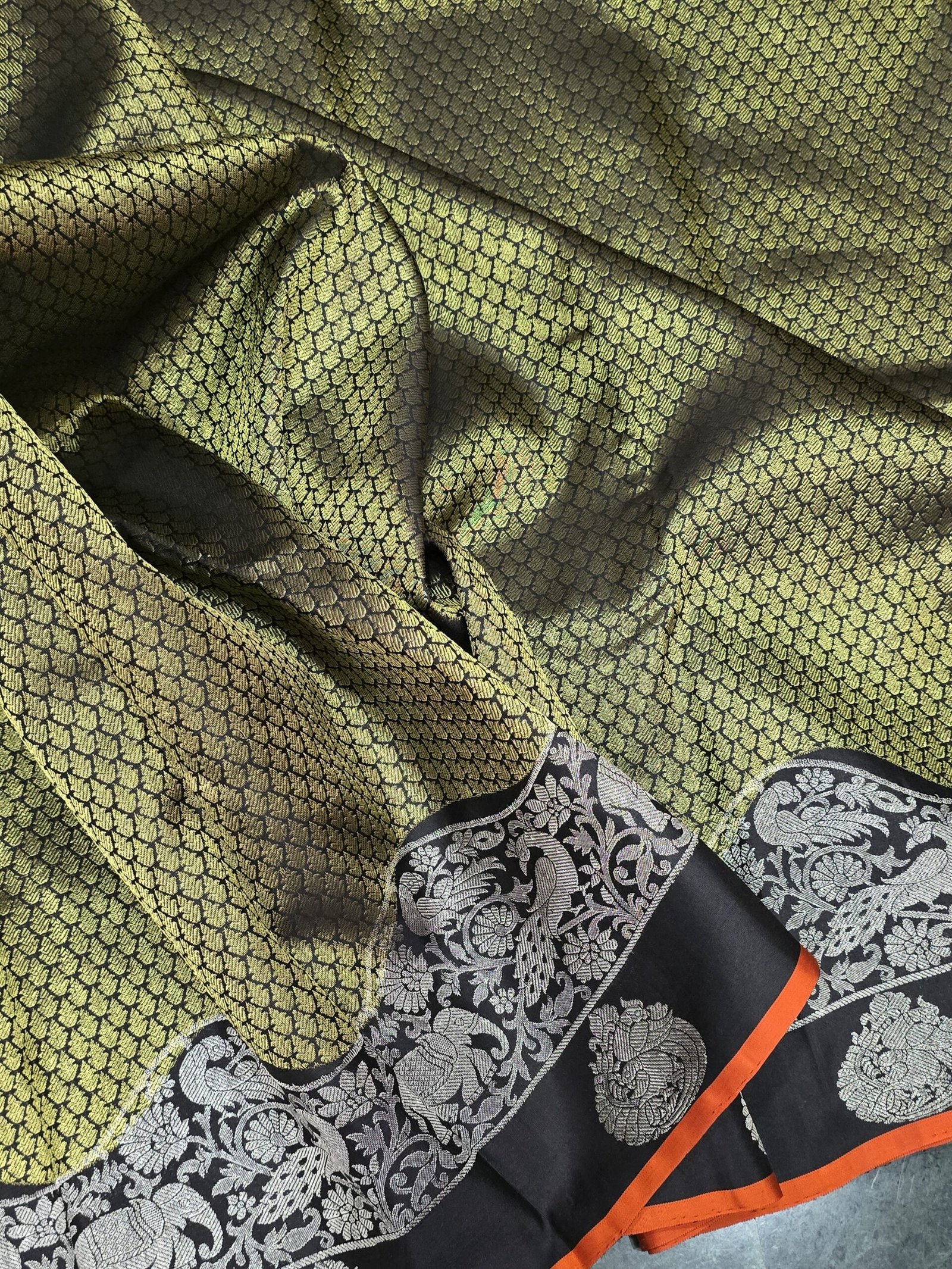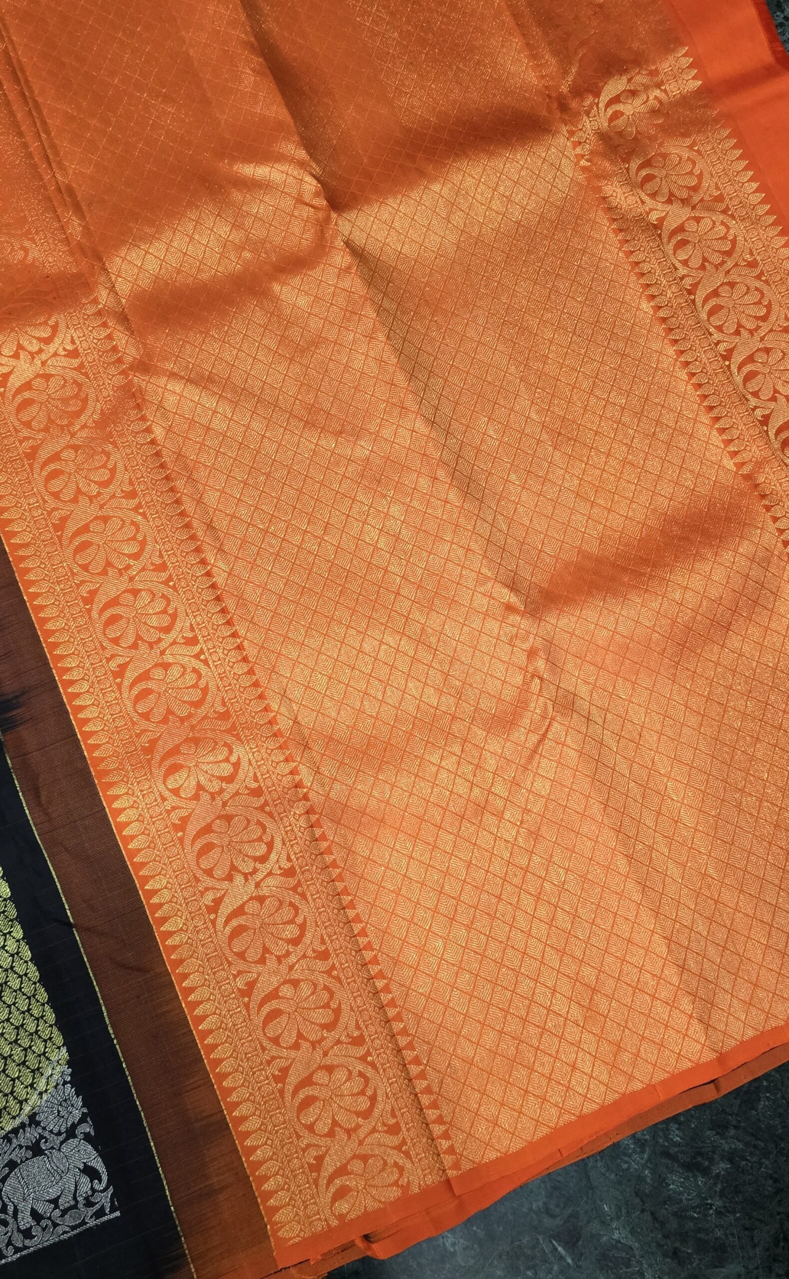Handwoven Kanchipuram silk with bold brocade on the body