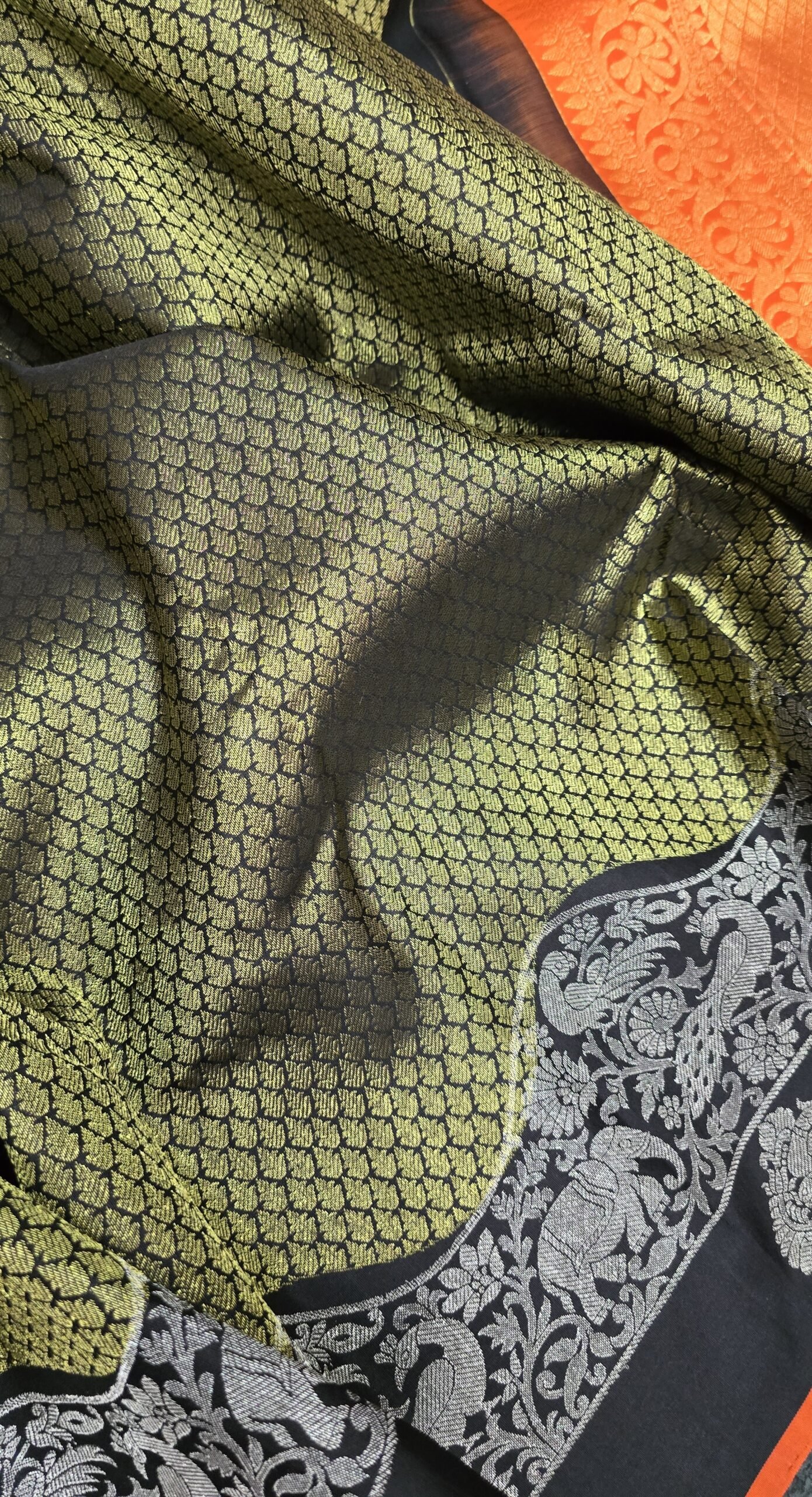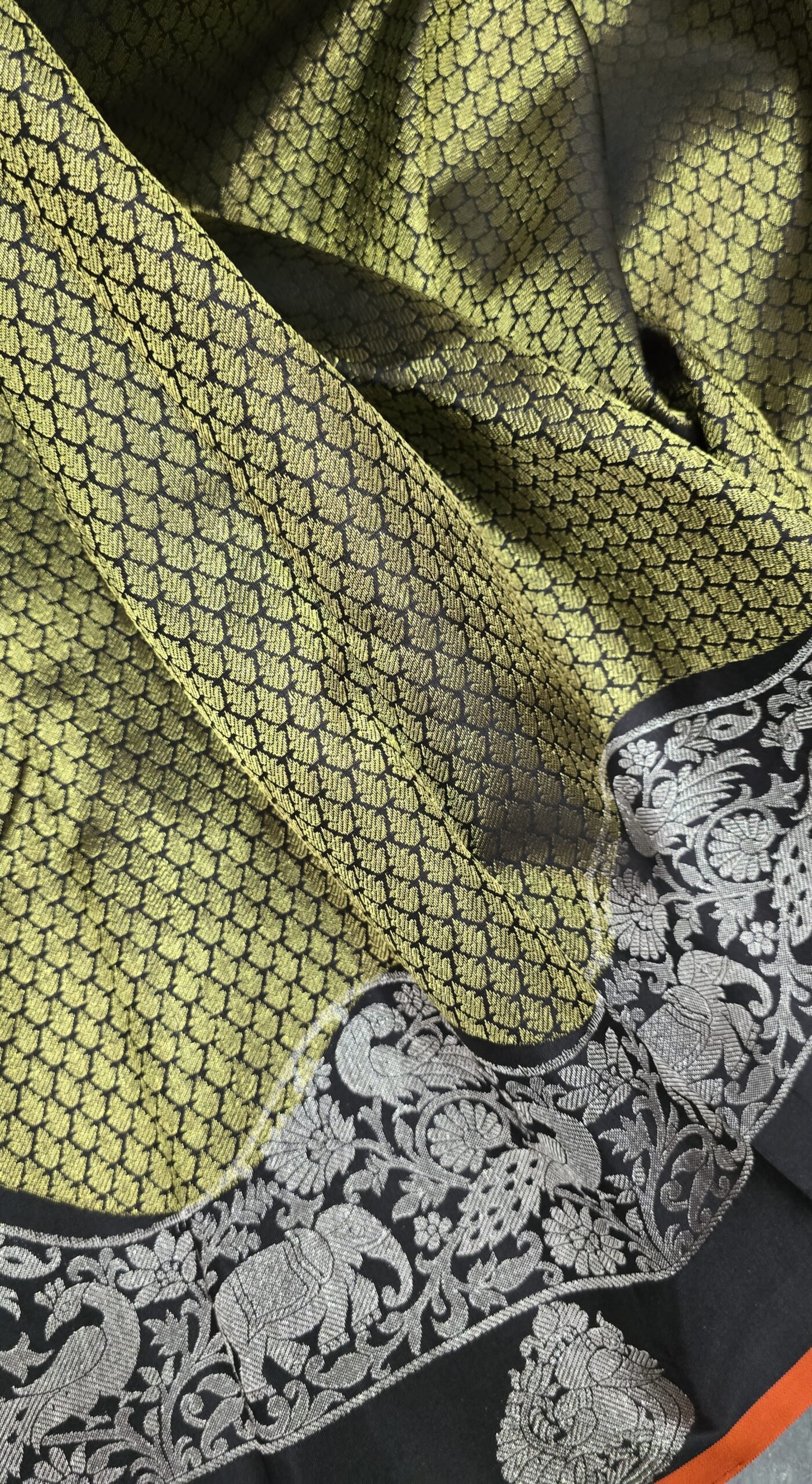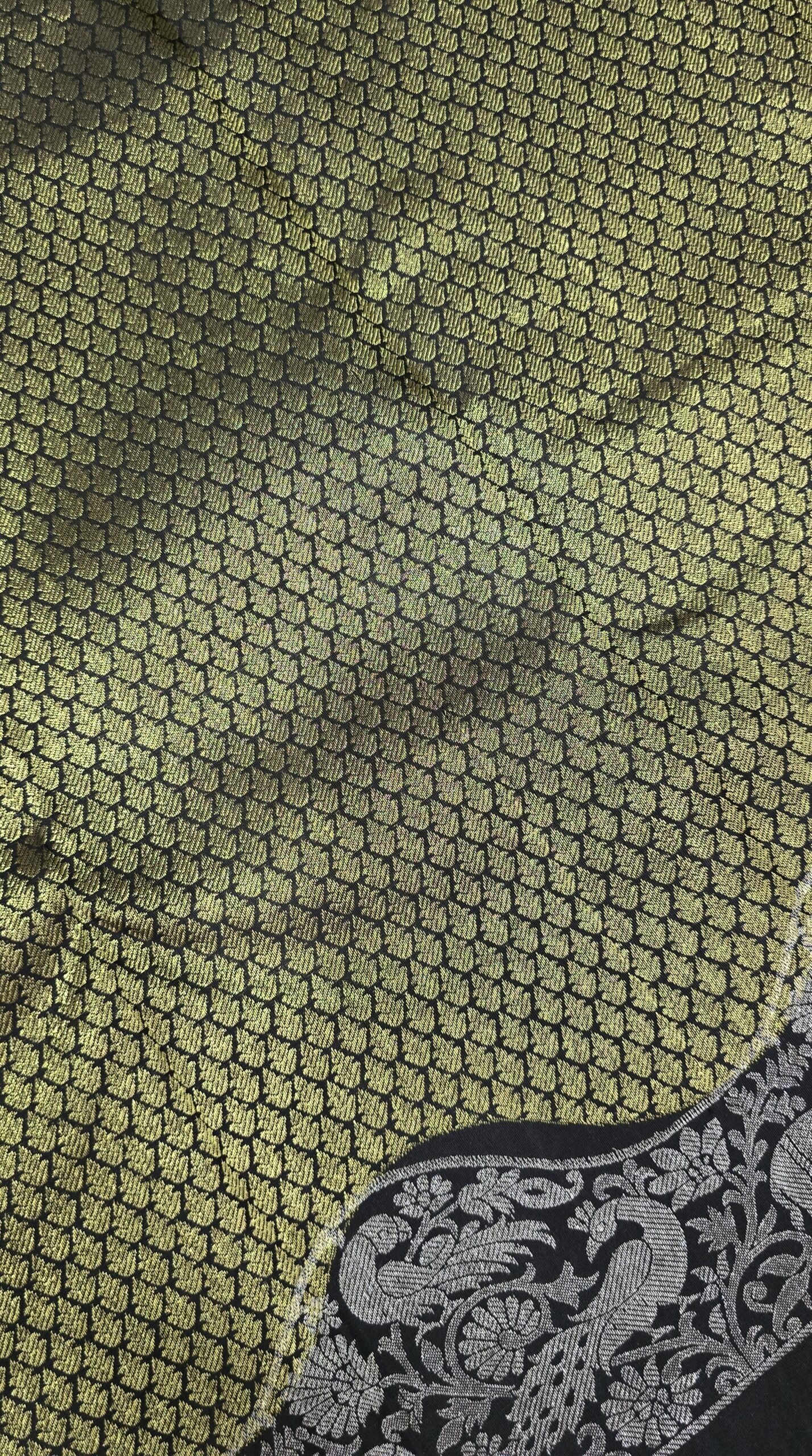 Handwoven Kanchipuram silk with bold brocade on the body